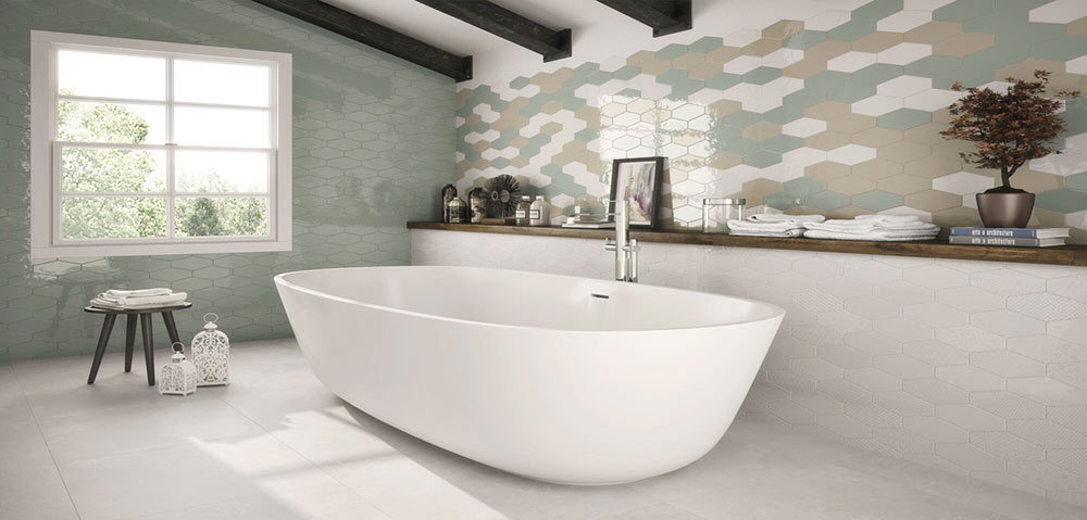 Vogue Hex Durby moderná kúpeľňa | Dlaždice a dlaždice